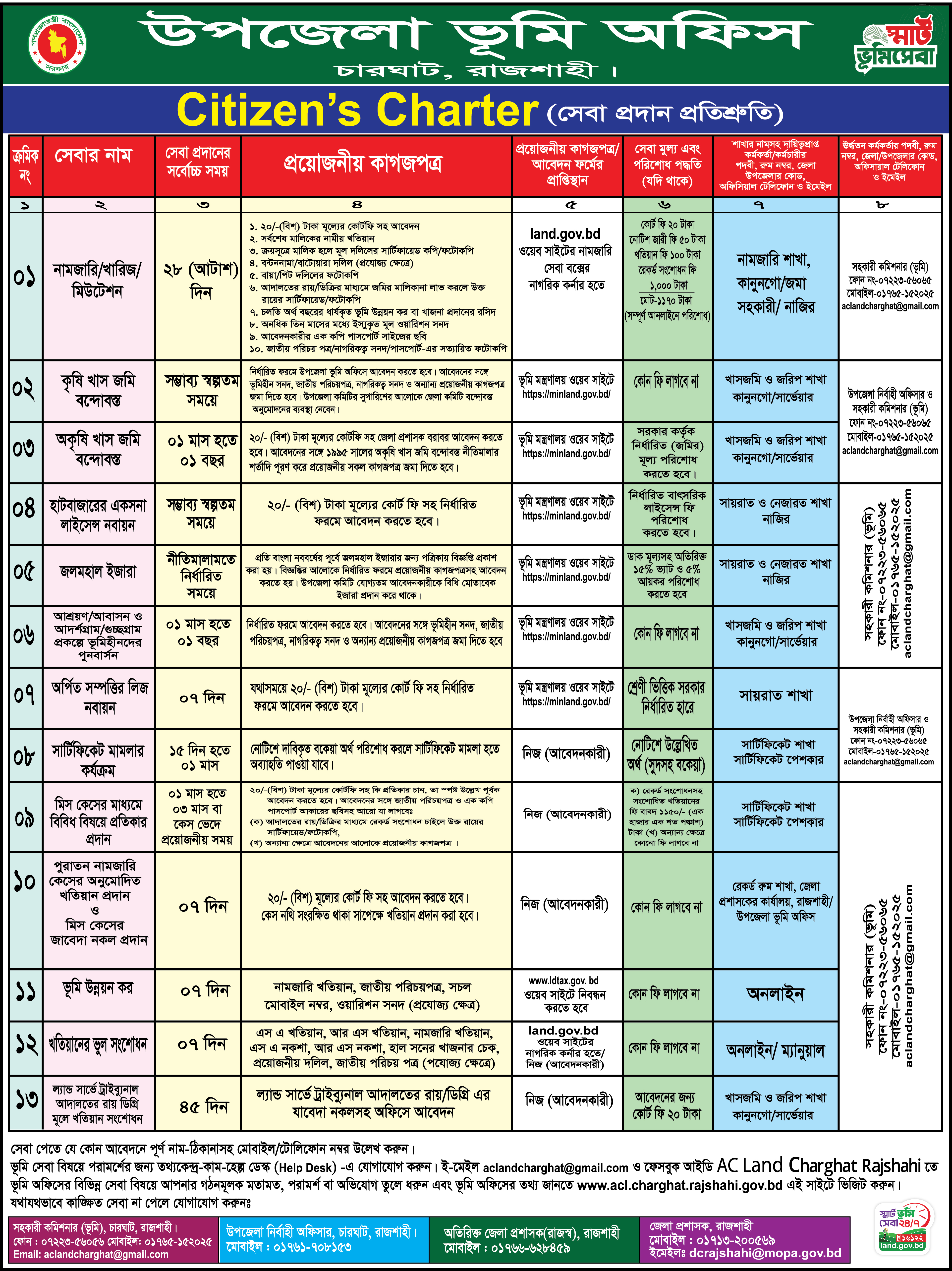 উপজেলা ভূমি অফিস, চারঘাট, রাজশাহীঃ ০৭২২৩-৫৬০৬৫